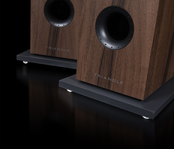 유닛 구성은 2.5웨이 3스피커. 역시 기존 북셀프에서 바닥만 길게 뽑아낸 구조가 아니다. 미드·우퍼를 하나 더 추가한 구성인데, 역시 저역 그레이드가 한층 높아진 모델이다. 유닛 사양을 잠깐 살펴보면, 2.5cm의 패브릭 돔 트위터를 도입했고, 그 아래에 13cm의 미드·우퍼 2개가 자리하는 구성이다. 미드·우퍼는 실제 보면 오목하게 들어간 독특한 구조인데, 트라이앵글 특유의 밸런스 좋은 중·저음이 이쪽에서 탄생된다. 덕트는 전면 아래에 제법 커다랗게 위치하여, 벽쪽 세팅은 물론이고 효율적인 저역을 도와준다. 이를 통한 주파수 응답은 47Hz-22kHz. 제품 크기 대비 굉장히 준수한 수치로, 저음역과 고음역의 퀄러티가 밸런스 좋게 완성되어 있다.