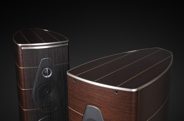 먼저 디자인을 살펴보겠다. 언뜻 보아도 동사의 오마주 시리즈 스타일을 닮아 있는데, 상단에는 알루미늄 플레이트가 고급스럽게 장착되었고 브랜드 로고를 사이드에 각인했다. 하단은 스파이크 홈과 일체형인 두꺼운 알루미늄 플레이트로 제작되었고, 전용 스파이크를 장착해 진동을 억제해 주고 있다. 캐비닛은 1세대 올림피카의 비대칭 류트 스타일은 계승했지만, 인클로저는 완전히 새로운 구조로 설계되었으며, 오마주 시리즈와 마찬가지로 이탈리아 비첸차에서 제작되었다. 캐비닛 구조는 오마주에서 사용한 동일한 방식으로, 두께가 다른 여러 겹의 목재를 프레스해 높은 강성을 갖게 했고, 자연스럽고 아름다운 라운드 곡면을 만들어 냈다. 그리고 트위터와 미드레인지 배플과 우퍼의 링 가이드는 가죽으로 마감해 고급스러움을 더했다. 가장 눈에 띄는 부분은 후면부인데, 오마주 시리즈에서 사용한 고급스러운 알루미늄 압출 성형 방식의 스텔스 울트라플렉스 시스템을 본격적으로 적용했다. 이는 베이스 리플렉스 포트 역할이지만 포트를 통한 공기 흐름을 촉진하는 동시에 속도를 제어해 난류를 줄여 포트 노이즈를 낮춰 부밍 발생이 적은 자연스러운 저역 반사음을 즐길 수 있게 한다. 그리고 스텔스 울트라플렉스는 독특하게 비대칭 디자인으로 되어 있고, 대칭으로 사용하도록 좌우가 구분되어 있는데, 리스닝 룸 환경을 고려해 베이스 리플렉스 방향을 안쪽 또는 바깥쪽으로 결정해 설치할 수 있어 저역 응답을 자유롭게 조정할 수 있다. 참고로 스피커 바깥쪽 공간이 충분히 있다면 포트 방향을 바깥쪽으로 하는 것이 좋으며, 그렇지 않는 좁은 공간에서는 안쪽으로 포트 방향을 설치하는 것이 효과적이다.
