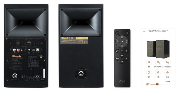 특유의 레트로 디자인은 언제 보아도 감각적이다. 시중 액티브 무선 스피커들이 대부분 현대적인 디자인을 추구하고 있다 보니 클립쉬의 이런 고전적인 레이아웃은 오히려 굉장히 돋보인다. 최신작인 더 세븐, 더 나인보다는 이전 세대의 디자인이지만, 퀄러티 높은 인클로저, 특유의 트랙트릭스 혼, 상단의 메탈 소재 회전식 다이얼, 레트로 스타일의 그릴 등 각각의 포인트들의 출발점이 여기에 있다. 색상은 2가지. 매트 블랙과 월넛이 마련되어 있다. 월넛의 그 내추럴함도 좋지만, 매트 블랙의 고급스러움도 또 다른 매력으로 다가온다. 이번 시청기로 받은 제품은 매트 블랙.
