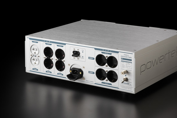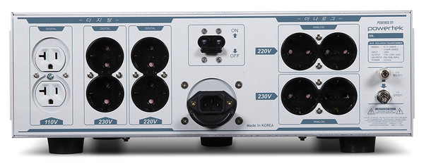 한편 후면을 보면 우선 입력단이 하나 마련되어 있고, 출력단도 다양하게 수록되어 있다. 그리고 무엇보다 좌·우 공히 아날로그와 디지털 부문에 사용할 수 있도록 나누어 놓았다. 개인적으로 멀티탭 같은 경우라도 최대한 분리해서 사용하는 편이다. 실제로 일부 전원 장치 전문 해외 메이커의 경우도 적어도 앰프, 소스기기의 출력 소켓을 나누어 놓은 설계를 보이곤 하는데, 소비 전력도 다르지만 서로 전기적 간섭을 회피하기 위해서이기도 하다. 파워텍도 IT-3000S에서 디지털 소스기기와 아날로그 관련 기기를 완벽히 나누어 설계해놓고 있는 모습이다. 한편 117V 등 해외 전용 기기들도 별도의 트랜스 없이 사용할 수 있도록 배려하고 있다.