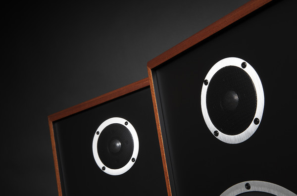 모델 3의 우퍼는 모델 5의 10인치에 비해 작은 8인치 사이즈. 하지만 모델 5와 모델 3의 주요 차이점은 모델 5에 미드레인지 드라이버가 있다는 것. 그래도 모델 3은 3웨이가 아닌 2웨이임에도 불구하고 모델 5의 네트워크 회로보다 단순하지 않으며, 부품 숫자도 비슷하다. 작아도 그만큼 내부가 충실하다는 증거다. 캐비닛도 서아프리카 마호가니, 잉글리시 월넛 마감 두 가지로 동일하고, 그릴도 스톤워시 리넨, 올드 월드 리넨, 현무암 블랙 니트 세 가지가 동일하게 준비되어 있다. 전용 스탠드도 동일하게 갖춰져 있는데, 모델 3의 스탠드는 8° 경사져 있고, 모델 5의 스탠드는 5° 경사져 있어 다르다. 이 경사진 스탠드와 무늬목의 패턴, 리넨 그릴 덕분에 마치 고급 가구처럼 보인다.