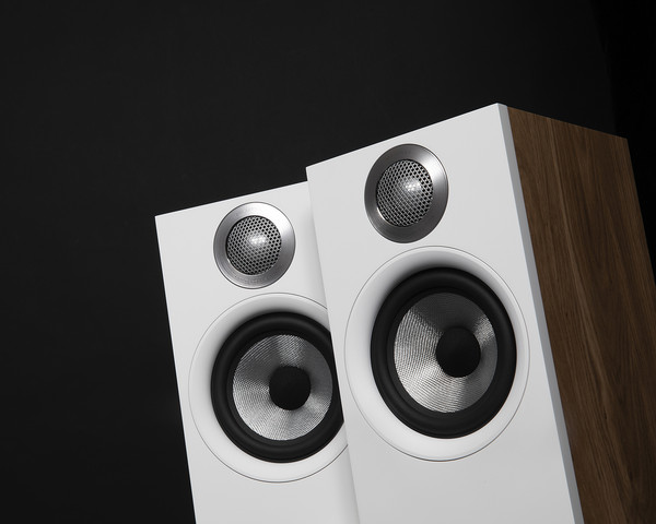 유닛 구성은 2웨이 2스피커. 2.5cm의 디커플드 더블 돔(Decoupled Double Dome) 알루미늄 트위터가 근사한 자체 그릴에 보호되어 있고, 13cm의 우퍼는 무려 컨티늄(Continuum) 콘이 적용되어 있다. B&W의 새로운 상징처럼 부각되는 은색의 컨티늄 콘은 언제 보아도 눈길을 사로잡는다. 사운드 역시 굉장히 스피드하고 다이내믹한 유닛으로, 새로운 세대의 B&W를 이끌고 있는 유닛이다. 후면에는 B&W가 자랑하는 플로우포트(Flowport)가 자리하고 있는데, 난류를 최소화하는 효과와 더불어 저역의 효율을 한층 높여 준다. 참고로 새로운 유닛과 함께 크로스오버를 완전히 개선했다고 하는데, 그 퀄러티 및 구성에 각별히 신경 썼다는 것을 강조한다. 주파수 범위는 무려 40Hz-33kHz(-6dB)인데, 저역의 성과도 눈부시지만, 고역 특성이 특별히 더 뛰어나다. 임피던스는 8Ω이며, 감도는 84dB로 설계되어 있다.