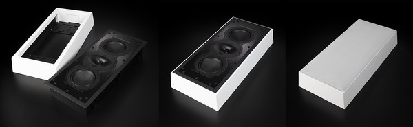 시청기 R5i-LR은 그런 곳에서 태어난 벽걸이 용(In-Wall) 좌우 채널 스피커. 종래에도 벽걸이용 스피커가 종종 등장했지만 대부분은 염가판의 형식적인 제품이 많았던 것에 비해 시청기는 제대로 된 고급의 3웨이 시스템이다. 당연히 몹시 무겁다. 이런 고중량 제품을 벽에 걸어도 되나 불안하기도 한데, 튼튼하고 견고한 프레임이 있어서 안심이 된다. 특히 벽 안에 집어넣는 인-월 방식이 아니라 벽에 거는 온-월 방식으로 사용할 수 있게 ‘On Wall Frame(OWF)’ 키트가 준비되어 있다는 것이 동사의 설명.