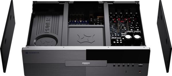 전원부에 들어간 정성도 대단한데, UDP900은 고품질의 자기 코어와 무산소 구리 와이어링, 금속 실드 적용 및 전체 에폭시 충진 처리한 토로이달 트랜스포머를 사용하는 아날로그 오디오 회로용 60W 리니어 파워 서플라이와 나머지 회로를 위한 60W 스위칭 파워 서플라이가 결합된 듀얼 파워 서플라이 디자인으로 되어 있다.