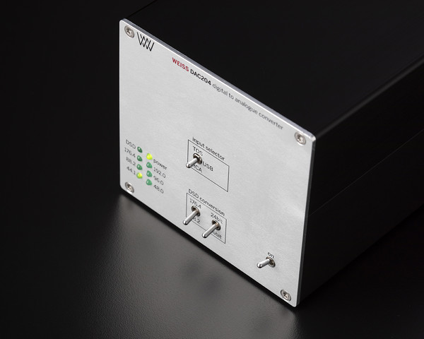 첫 번째로 제품 콘셉트다. DAC204는 소형 박스형 제품으로 언뜻 보아도 화려함은 없는 상당히 기기적인 요소들이 강한 디자인이다. 전면 패널에는 프로 장비를 연상시키는 직관적인 아날로그 스타일 스위치들만 있다. 오른쪽 하단의 전원 스위치, TOS, USB, RCA로 3단형 토글 스위치 입력 실렉터와 샘플링 레이트 LED 인디게이트 등만 배치한 전형적인 심플 박스형 모델이다. 하지만 꼭 필요한 입·출력 단자들만 배치해 두었기 때문에 사용상 빠짐없이 사용이 가능하다. 그리고 오히려 이런 아날로그적인 스타일을 좋아하는 사용자들에게는 익숙한 스타일이라고 할 수 있다. 참고로 상위 라인업에 비해 가격을 낮춘 대신 상위 기종에서 사용할 수 있는 웹 인터페이스를 통한 연동 기능, 스트리밍 재생, 헤드폰 출력, 리모컨 기능은 과감히 삭제하고 꼭 필요한 기능만 적용한 오직 사운드 전용 DAC 제품으로 만들었다.