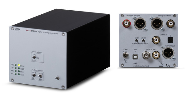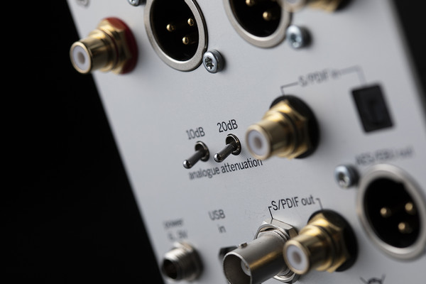 세 번째 다양한 입·출력 단자의 구성이다. 디지털 입력의 경우 총 3개를 지원하는데, PC 연동용 USB와 옵티컬용 토스링크, 코액셜 RCA 입력을 지원하고, 전면에 토글 스위치로 3개의 디지털 입력을 선택할 수 있다. 디지털 출력은 S/PDIF용 BNC 및 RCA 단자와 소형 제품이지만 AES/EBU 출력 단자까지 적용되어 주변 기기와의 연동이 자유롭다. 그리고 DSD는 PCM으로 컨버전되며, 전면에 토글 스위치를 통해 최대 24비트/176.4kHz 샘플레이트 선택이 가능하다. 아날로그 출력은 밸런스 XLR과 언밸런스 RCA를 지원하며, 프리앰프와 믹서 등 다양한 장비와의 호환성을 고려해 후면에는 10dB, 20dB 2개의 스위치를 사용해 10dB 단위로 4가지의 출력 레벨을 선택 가능하게 했다. 특히 상위 모델에서 적용되었던 PC와 연동된 전용 툴이 익숙하지 않다면 DAC204와 같은 직관적인 아날로그 버튼 방식이 오히려 사용하기 편리하다.