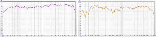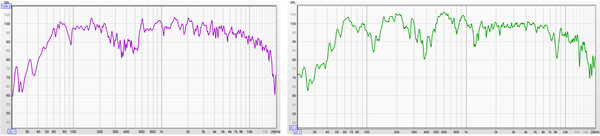 스피커별 동작 특성을 알아보기 위해, REW(Room Eq Wizard, 무료 버전) 소프트웨어를 사용해 주파수에 따른 스피커 음압 크기(SPL)를 측정하였다. 본 실험과 같이 무향실 조건이 아닌 일반 공간에서, 기초적인 계측 설비를 이용해 측정한 결과는 상대적인 음향 경향을 나타낼 뿐 절대적인 기준이 될 수 없다. 물론 측정 결과를 반영해 중·고역 어테뉴에이터를 조절하고 설치 위치를 바꾸면 주파수 응답이 확장된 그래프를 얻을 수 있을 것이다. 그러나 이때의 결과가 청취자가 선호하는 음향 특성과 일치한다는 보장은 없다. 여러 사람들의 귀를 통해 결정된 스피커 설치 위치와 중·고역 감쇠 값을 기준으로 튜닝을 진행해야 하는 이유가 여기에 있다. 이와 같은 점을 고려하여, 본 측정에서는 스피커의 감쇠값을 건드리지 않고 주파수 대역별 음압 곡선을 구했다. 다만 북셀프인 JBL L100 클래식 스피커는 조절이 쉽고 원래 값이 0dB에 맞춰져 있었기에 반복해 측정하면서 감쇠량과 위치를 반복적으로 변경해 그래프상 최적의 곡선을 구현했다.