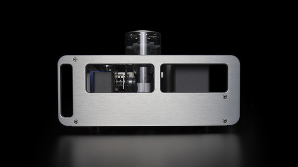 외관부터 본다. 일단 섀시 사이즈가 풀사이즈 인티앰프급이다. 가로폭이 43cm, 높이가 24cm, 안길이가 42cm이며 무게는 23.6kg이 나간다. 전면 중앙에 올닉이 자랑하는 61단 정임피던스 어테뉴에이터, 양쪽에 출력관 바이어스 상태를 알 수 있는 레벨 미터, 그 사이에 파워 버튼과 입력 선택 노브 및 입력 상태를 표시하는 LED, 4개의 헤드폰 잭(6.3mm 2개, 4핀 XLR 2개)이 있다.