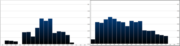 본 논문에서 측정한 국악기의 주파수 대역은 1kHz를 기준으로 한 옥타브 밴드로, 250Hz-4kHz의 범위. 125Hz 이하의 저주파수는 마이크 고정 장치 때문에, 그리고 8kHz 이상의 주파수는 마이크로폰의 최적 주파수 범위를 넘기 때문에 측정하지 않았다. 논문을 읽다가 음원 재생 프로그램인 푸바2000에서도 다양한 소리 파형을 볼 수 있다는 사실에 생각이 미쳐, 국악 음원을 재생하면서 주파수 스펙트럼을 주의 깊게 관찰하였다. 사용된 음원은 ‘정창관 국악 녹음 2집과 3집’. ‘조순애의 여창 단가와 김영택의 서도 소리’다. 과연 논문에서 설명한 대로 남성과 여성 가객이 소리를 내는 주파수 대역은 서로 달랐다. 남성은 500Hz 대역에서 그리고 여성은 1kHz 대역에서 각각 두드러진 스펙트럼이 나온다. 이 실험을 통해 새로 알게 된 사실은, 북장단이 주파수에 미치는 효과였다. 고수가 북 중앙을 북채로 두드릴 때 나는 소리는 중·저역 주파수 대역을 채워 주고 있었다. 또한 북 테두리를 채로 칠 때 내는 소리는 중·고역을 채워줘 소리꾼의 좁은 소리 대역을 넓게 확장시켰다.