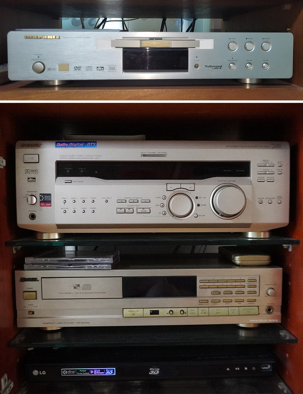 LP 시대가 저물고 이어 CD가 발매되었을 때 어떠한 기기를 구매할 것인가를 놓고 오디오 동호인들과 블라인드 테스트를 진행했다고 한다. 두 번의 테스트를 거쳐 선정된 것이 인켈의 CD-5010G CDP. 이후 SACD가 발매되면서 마란츠의 DV8300 SACD·DVD 플레이어도 같이 사용하고 있다.