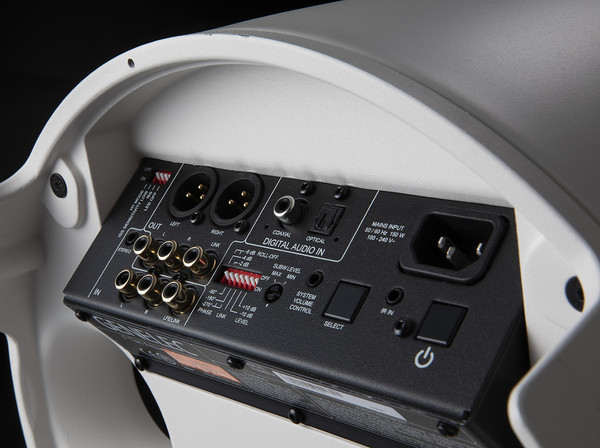 후면 패널에는 베이스 리플렉스 포트와 함께 라인 레벨 RCA 및 XLR 입력과 IEC 전원 소켓이 있으며, 다양한 설정을 할 수 있는 여러 개의 딥 스위치가 마련되어 있다. 그리고 여러 가지 다채로운 브래킷을 장착하기 위한 구멍이 있고, 다양한 스탠드도 준비되어 있다.