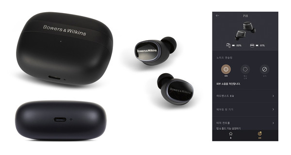 B&W 전용 앱인 Music | Bowers & Wilkins을 지원한다. 간단한 회원 가입 및 메일 인증 절차가 필요하지만, 전용 기능들과 EQ 설정 등을 맞추려면 당연히 필수적으로 설치해야 한다. 앱에서는 노이즈 캔슬링, 패스 스루, 끄기를 시각적으로 선택할 수 있고, 5밴드를 조절할 수 있는 어드밴스드 EQ를 제공하고, 완전히 중립적인 트루 사운드까지 세팅할 수 있다. 또한 이어 버드 하우징 터치 컨트롤의 탭 및 홀드 기능을 설정할 수 있고, 착용에 따라 일시 정지되는 기능을 켜고 끌 수 있다. 그 외에도 시스템 업데이트 및 공장 초기화, 스트리밍 링크 서비스, B&W 컬렉션인 팟캐스트를 플레이할 수도 있다.