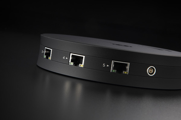 심플하고 모던한 느낌의 블랙 컬러에 아담한 사이즈의 원형 디자인으로 되어 있는 QNET은 약간의 거리를 둔 5개의 8P8C(RJ45) 포트가 배치되어 있는데, 이 포트는 1부터 5까지 숫자가 붙어 있다. 그리고 각 포트별로 성능이 다르게 되어 있는데, 1부터 3까지는 1000BASE-T(1Gbps)로 빠른 속도를 위한 라우터 및 일반 네트워크 장치를 위한 것이며, 4와 5는 100BASE-TX(100Mbps)로 노이즈 레벨을 대폭 줄여주는 효과를 내는 오디오 서버 및 플레이어, 그리고 외부 미디어 소스에 적합한 포트이다. 즉, 이는 단순히 순서를 구분하기 위함이 아니라는 것. 그리고 5개의 8P8C(RJ45) 포트 옆에는 9V 사양의 DC 전원 케이블을 연결할 수 있는 포트가 마련되어 있는데 기존 어댑터 단자와는 다르게 생겼다.