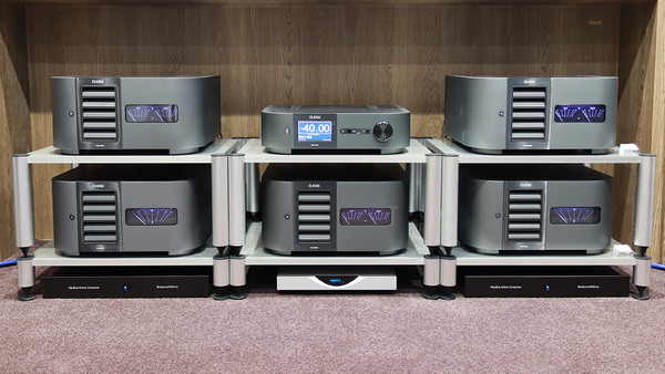 이번 시청은 서울 잠실 롯데 백화점 10층에 위치한 B&W 전용 매장에서 이뤄졌는데, B&W 노틸러스를 완벽한 컨디션으로 들을 수 있게 세팅해놓았다. 매칭 앰프는 클라세 델타 시리즈가 대거 투입되었는데, 델타 프리 MK2, 델타 스테레오 파워, 델타 모노블록 파워까지 모두 세팅되었다. 참고로 위쪽 유닛 3개는 스테레오 앰프가 연결되고, 우퍼만 모노블록 앰프로 연결된 구성이다.