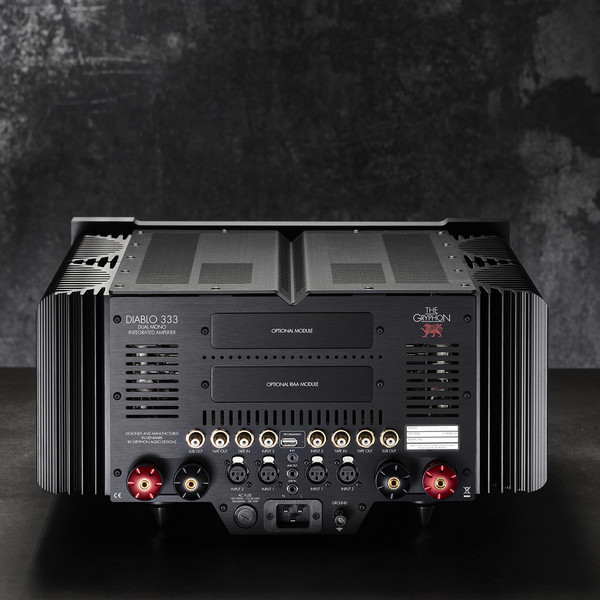 출력은 그리폰 특유의 이름 작명법에 따라 333W를 그려내는데, 단순히 전작에 비해 출력만 33W만 상승했다고 생각하면 안 된다. 디아블로 333을 위해 완전히 새롭게 디자인되었다고 생각해도 좋을 정도로, 플래그십 라인업의 물량 투입들을 최대한 효율적으로 물려 받았다. 그리폰이 자랑하는 트루 듀얼 모노 클래스A 구성과 제로 글로벌 네거티브 피드백 등은 여전히 기술적 근간을 이루며, 에이펙스와 마찬가지로 10개의 출력 트랜지스터로 강력히 보강되었고, 대형 홈그렌 듀얼 모노 트랜스포머 및 채널당 68,000㎌ 필터 커패시턴스 등 전원 쪽의 스펙업도 눈여겨 볼 수 있다.