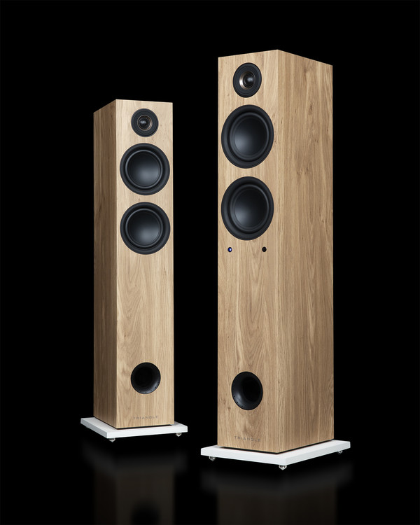 유닛 구성은 2.5웨이 3스피커. 그냥 2웨이에서 길게 늘여놓은 모델이 아니라, 미드·우퍼가 하나 더 추가된 저역 보강 구조를 따르고 있다. 2개의 미드·우퍼는 13cm 사양으로, 오목하게 들어간 독특한 모양새를 보여주는데, 여기에도 트라이앵글의 오리지널 기술이 녹아들어 있다. 트위터는 2.5cm 패브릭 돔 트위터를 채택하여, 트라이앵글 특유의 화려한 고역을 책임지는데, 개인적으로도 이 고음 사운드가 너무나 매력 있다. 덕트는 전면 아래에 깊숙이 자리하고, 하단은 넓은 스탠드가 보강되어 있다. 참고로 전면 덕트 구조는 벽 뒷면과 딱 붙을 수 있게 해주는데, 실제 설치 환경을 생각한다면 꽤 유리한 장점 중 하나이다. 주파수 응답은 47Hz-22kHz로 세팅되어 있는데, 실제 운용해보면 중·저음역과 고음역의 퀄러티가 밸런스 좋게 완성되어 있다.
