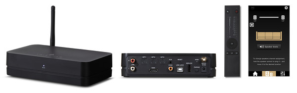 시청기는 이미 소형 무선 스피커를 여러 기종 발표한 동사에서 이제 소형 시스템으로 플래그십이요 하고 내놓은 그런 기종이다. 소리를 들어 보면서 그동안 무선 스피커에 은근히 깔려 있었던 약간의 의구심마저 말끔히 사라져 버림을 느낀다. 소리와 달리 기계적인 불안감이 다소 남아 있었지만 그것마저 말끔히 가셔 버린 것은 ‘스테레오 허브’라는 외부 노출형 컨트롤 장치 때문이다. 대부분의 무선 스피커와 달리 컨트롤 장치가 별도로 있어 기기의 안정도와 신뢰도가 대폭 증가하고 있는 것이다. 전체를 내부에 수납하면 우선 겉보기는 깔끔하지만 어딘지 모르게 아마추어, 즉 초보자를 위한 기능으로 여겨지기 십상이다. 스테레오 허브라는 이 컨트롤 박스는 작은 종이책 크기 정도이며 스트리밍과 기타 모든 입력 연결을 담당한다.