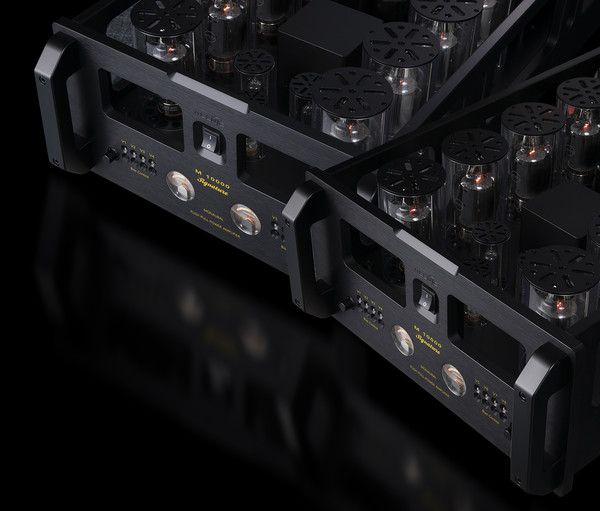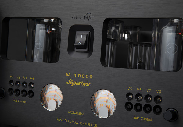시청실에 귀한 손님이 찾아왔다. 올닉(Allnic)의 새 플래그십 모노블록 진공관 파워 앰프 M-10000 시그니처(Signature)다. 두 사람이 겨우 들 정도로 어마어마한 덩치와 무게를 자랑하는데, 빼곡히 박힌 출력관과 드라이브관, 초단관, 초크 트랜스, 전원 트랜스, 출력 트랜스 위용이 대단하다. 출력 역시 빔관 KT170을 채널당 총 8개를 투입, 푸시풀 구동해 무려 500W를 뿜어낸다. 그야말로 몬스터다.