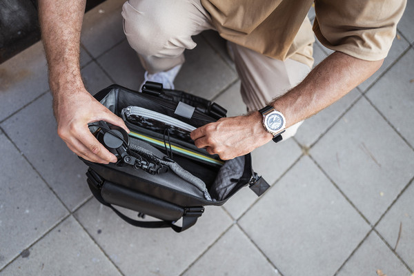 이 가방 역시 85개의 0.5L PET 플라스틱 병으로 만든 재활용 소재를 사용한 친환경 제품이며, 외부 소재는 친환경 수성 폴리우레탄 코팅이 된 견고하고 방수성이 뛰어난 RPET 900D 폴리에스터로 제작되었고, 안감은 RPET TC 폴리에스터 소재로 제작되었으며, 지퍼는 잠금 가능한 이중 PVC 코팅 YKK AquaGuard를 사용했다.