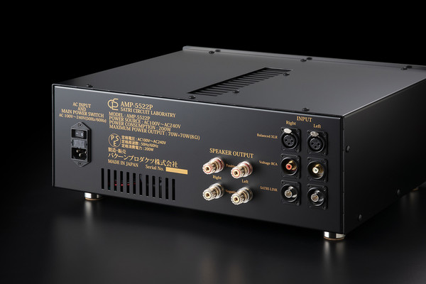 이번 리뷰의 주인공은 바로 그 AMP-5521의 후속인 AMP-5522다. 일본 내수용은 RCA 입력 단자가 4조, BNC 단자가 2조인 AMP-5522M, 대한민국 수출용은 XLR 입력 단자 1조, RCA 입력 단자 1조, BNC 단자 1조로 이뤄진 AMP-5522P다. 전면에 조그만 디스플레이가 생기고 방열판이 상판 가운데에 노출되는 등 섀시 디자인이 완전 달라졌고, 출력도 35W에서 70W로 크게 늘었다. 게인은 23.5dB(15배), 무게는 11kg이다.