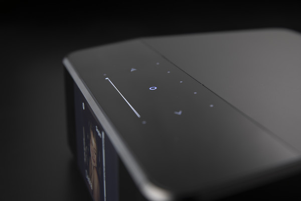 가장 눈에 띄는 특징은 기기 전면 패널에 있는 5인치 풀 컬러 디스플레이. 기기가 대기 상태일 때는 시간과 날짜를 표시하고 음악이 재생 중일 때는 앨범 정보를 표시한다. 지금까지 동사가 스트리머에 디스플레이를 포함하지 않았던 것과는 다르다. 그리고 위쪽으로 반짝이는 패널이 있는데, 전원을 켜면 터치 컨트롤 기능이 드러난다.