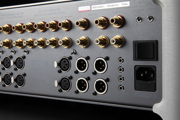 미니멀한 전면 디자인과 달리 제품 뒷면에는 꽤 많은 입·출력 단자들과 스위치가 있다. 포노를 비롯한 6개의 입력이 있는데, 포노부터 입력 3번까지는 RCA와 XLR을 스위치로 선택할 수 있게 되어 있다. 포노 입력이 별도로 분리되어 있긴 하지만, 실제 포노 앰프가 내장된 것은 아니고, 입력 표기만 따로 했을 뿐이다. M-10을 위한 포노 옵션도 없으니 오해는 말자. 이 외에도 HT BYPASS로 명명한 바이패스 입력을 별도로 제공하며, RCA와 XLR 중 선택할 수 있게 되어 있는데, 용도에 맞춰 A/V 프로세서나 리시버와 연동하여 사용할 수 있도록 편의성을 갖추었다.