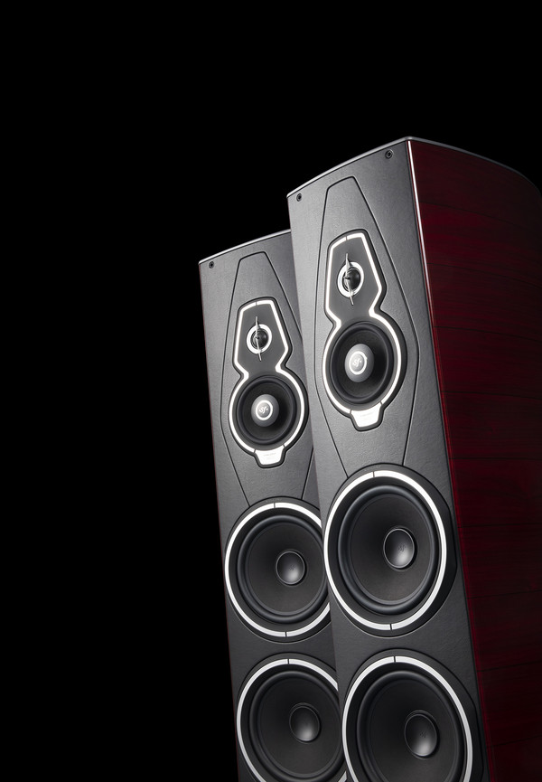 먼저 외관 디자인을 보자. 상단은 루트 악기 형태를 지녔으며, 현을 형상화한 고무줄 그릴 등 전체적인 스타일이 마치 현악기를 보는 듯한 뛰어난 마감과 외관을 가졌다. 그리고 전용 받침대와 이탈리아 가죽 공예가 빛나는 가죽으로 마감된 전면 배플도 빼놓을 수 없다. 제조는 이탈리아 비첸차 공장에서 오랜 세월 숙련된 기술자들이 수작업으로 직접 제작한다. 그렇기 때문에 장인 정신을 엿볼 수 있는 하나의 예술 작품을 보는 것 같다. 캐비닛 내부는 격자 구조로 진동을 잡아 주며, 트위터와 미드레인지가 결합되는 부분은 별도의 독립적인 인클로저 용적으로 제작되어 있다. 또한 인토노 기술을 적용해 미드레인지에서 트위터 방향으로 내부에 덕트를 별도로 추가해 내부 압력을 감소시키는 등 보이지 않는 부분에도 변화를 주었다. 그리고 베이스 리플렉스 방식의 스피커로, 저역 포트는 후면 벤트 홀 방식의 대형 알루미늄 가이드로 특수 제작된 스텔스 울트라플렉스 시스템을 적용해 덕트 역할과 함께 시각적으로 후면 전체 기둥 역할을 하고 있다.