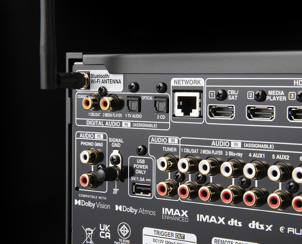 입·출력을 살펴보면, HDMI는 후면에 7개의 입력과 3개의 출력이 있다. 바인딩 포스트는 프런트 좌·우, 센터, 서라운드 좌·우, 서라운드 백 좌·우, 하이트 1 좌·우, 하이트 2 좌·우, 하이트 3 좌·우, 하이트 4(프런트 와이드) 좌·우로 구성되어 있다. 프리 아웃도 동일하다. 서브우퍼 아웃은 RCA 4개다. 그 외 컴포지트 2개, 컴포넌트 1조의 비디오 입력과 Zone 2, Zone 3 아웃이 있고, 6조의 RCA 입력과 MM 포노 입력, 튜너 입력과 코액셜 입력 2개, 옵티컬 입력 2개가 있다. 이더넷 단자와 블루투스·와이파이용 안테나가 있다. 전면에는 USB A 입력, 6.3mm 헤드폰 출력, Audyssey 측정 마이크 단자가 있다.
