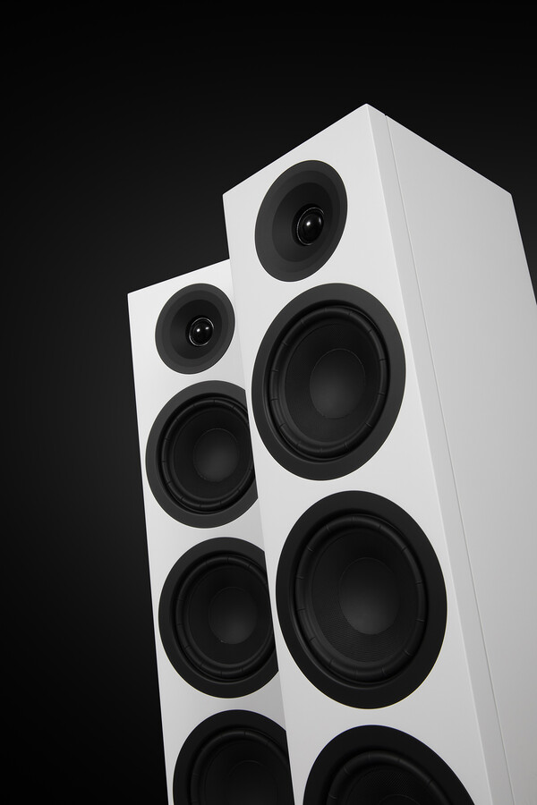 이 스피커는 3웨이 4스피커, 베이스 리플렉스 디자인의 본격 설계 기종인데, 주파수 대역은 30Hz에서 25kHz로 넓으며, 파워 핸들링이 300W로, 즉 300W급의 출력이 들어와도 괜찮다는 것인데 대단하다. 자체 설계한 1인치 시그니처 DXT 트위터가 매우 돋보이는데, 저질량 직조 섬유 멤브레인을 사용하는 새로운 소프트 돔 트위터이며, 특허를 받은 넓은 분산도를 제공하는 DTX 음향 렌즈를 탑재해 스윗스팟이 너무 좁아지는 현상을 방지하고 있다. 그리고 롱 스트로크 모터 시스템과 함께 정확한 재생을 위해 빠른 응답 속도를 제공하는 독점적인 저질량, 저왜곡 유리 섬유 진동판을 사용하는 5.5인치 크기의 미드레인지와 2개 우퍼는 맞춤 제작되었고 크기에 최적화되었다. 그래서 멤브레인이 동일한 크기의 기존 스피커보다 40% 더 많은 공기를 이동시켜 더 작고 공간 친화적인 캐비닛에서 더 깊고 선명한 저음을 구현한다. 미드레인지는 영화 속 대사를 또렷하게 전달, AV로 사용 시 대단한 고성능을 보인다. 이 정도 가격대 제품으로는 초유의 기술력이며 그 결과 놀랍게도 대형기와 흡사한 소리를 내준다는 것.