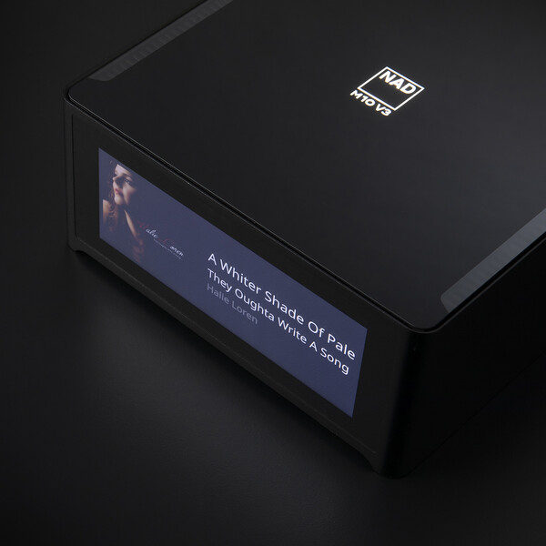 NAD M10은 NAD의 스트리밍 앰프 중 대표적인 프리미엄 기종인데 이제 다시 V3로 올라섰다. 전면 대형 컬러 디스플레이, 매끈한 유광 마감, 네모반듯한 섀시 등 디자인이 매우 아름다워 세련이라는 단어가 저절로 떠오르게 하는 M10 V3의 핵심은 블루OS(BluOS) 스트리밍 플랫폼에 하이펙스 N코어(Hypex NCORE) 클래스D 증폭 모듈과 자사의 하이브리드디지털(HybridDigital) 기술을 통해 채널당 100W 출력을 제공하는 스트리밍 앰프라는 것이 특징.