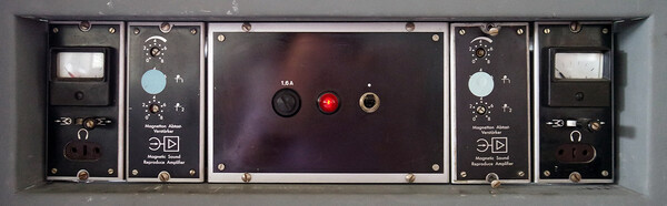 메인 스피커 뒤편에 보이는 서브 스피커 역시 하틀리 24인치 우퍼가 채용된 것이다. JBL LE85 혼이 중역을, JBL의 175 벌집 혼이 고역을 담당토록 구성했다. 두 조의 하틀리 우퍼 중 메인 시스템은 영국에서 제작된 것이고 또 다른 서브 시스템은 미국 생산품이라는데, 그의 귀에는 영국산 우퍼의 소리가 잘 맞는다고 한다.