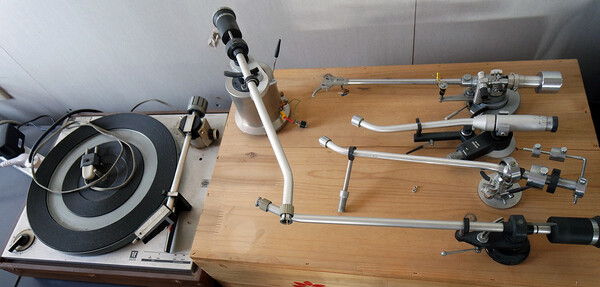 박 씨는 주로 아날로그 기기나 스피커를 대상으로 튜닝과 개선 작업을 하고 있다. 애호가의 호기심을 무기로 시행착오를 반복하면서 최상의 소리를 찾는 데 정성을 쏟고 있는 것이다. 테크닉스, 데논, PE LP 플레이어의 소리 변화를 즐기기 위해, 여러 개의 톤암을 준비했다. 톤암을 교체한 후 오버행과 침압, 밸런스, VTA 등을 조정해 소리의 변화를 이끄는데, 최적의 상태로 맞춰진 LP 플레이어가 완전히 다른 재생음을 내는 데 놀라곤 하며, 계측기보다는 자신의 경험과 청감에 의존한 튜닝에 어느 정도 만족한단다.