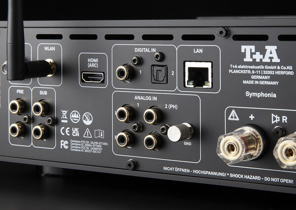 심포니아는 당연히 퓨리파이의 아이겐탁트 클래스D 증폭 모듈을 사용, 8Ω 125W, 4Ω에선 정확히 두 배인 250W라는 막강한 출력을 보여 주고 있다. 이 깨끗한 파워 앰프의 힘이 뒷받침되어 있지 않은 보급형 클래스D 제품과는 이제 분명히 차별이 될 것이다. 그리고 전원부에 T+A의 독보적인 설계를 적용, 순수 사인파와 함께 전통적인 전원부 대비 두 배 이상 높은 주파수를 통해 간섭을 효과적으로 해결한다.