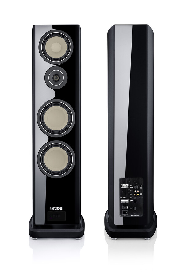 실질적인 유닛 구성은 3웨이로, 하단에 베이스 덕트를 두고 있는 다운파이어링 구조이다. 역시 캔톤답게 캐비닛 마감에 공들였는데, 고품질 다층 라미네이트로 제작되며, 12단계에 걸친 고광택 피아노 마감 공정을 통해 한층 더 깊이감 있는 외형을 완성했다. 최상단에 17.4cm 미드레인지가 자리하고, 그 아래에 2.5cm의 트위터가 장착되어 있다. 하단부에는 대형 우퍼 2개가 압도적인 위용을 보여주는데, 19.2cm의 사양이다. 트위터는 산화 알루미늄 세라믹 구조, 미드레인지와 우퍼는 세라믹 텅스텐 구조로 되어 있다. 이를 통한 주파수 대역은 20Hz-40kHz 사양이고, 크로스오버는 220Hz, 3000Hz로 나뉜 모습이다.