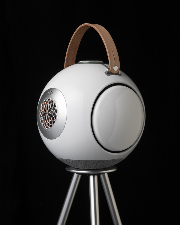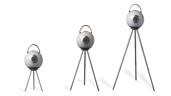 가장 먼저 눈에 들어오는 건 역시 구형 디자인과 컬러 구성. 블랙, 화이트, 메탈릭 그레이로 출시되었고, 각 컬러는 광택과 질감의 디테일은 꽤 좋은 편이다. 특히 실제 들어보면 굉장히 묵직한데, 이 정도 단단하게 설계되어야 이런 저음이 나올 수 있다는 것을 몸소 보여준다. 여기에 3단 조립식 스탠드가 제공된다는 점도 이례적이다. 보통 옵션으로 추가 구매되어야 할 것이, 여기서는 기본 제공이다. 아주 마음에 드는 정책이다. 높낮이 조절이 가능하며, 자석 방식으로 간편하게 탈부착되기 때문에 어느 공간에나 쉽게 세팅할 수 있다는 것도 장점. 휴대용 가죽 손잡이까지 깔맞춤인데, 캠핑이나 남들에게도 보여주기도 참 예쁜 디자인이다.