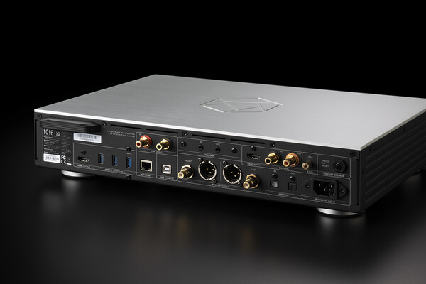 후면으로 넘어가면 여러 인터페이스가 시야를 가득 메운다. 우선 디지털 입력은 이더넷, 광, 동축, USB B 입력단이 보인다. 추가로 HDMI eARC 입력단을 마련해 TV와 연결해 TV의 음성 출력을 RS451과 연결된 하이파이 시스템으로 즐길 수 있다. 한편 한 조의 RCA 라인 입력도 갖추고 있어 프리앰프 역할도 가능하다. USB 3.0 단자도 마련해 놓아 USB 메모리 재생도 거뜬하다. 출력으로 눈길을 돌리면 역시 광, 동축 출력 모두 가능하며 아날로그 출력 같은 경우 RCA 및 XLR 모두 대응하고 있다. 블루투스 안테나는 전파 간섭 등을 고려해 오렌더 같은 제품처럼 밀봉시킨 모습이며, 와이파이 또한 기본적으로 제공되는 별도의 USB 와이파이 동글을 꼽아 사용하도록 했다. 리모컨 또한 기본 제공하지만 한 번 세팅이 끝나면 사용할 일은 별로 없을 듯하다. 결과적으로 RS151에서 AES/EBU 같은 입·출력이나 I2S 출력을 뺀 것을 알 수 있다.