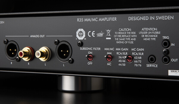 후면의 토글 스위치로 게인을 조정할 수 있다. MM은 RCA 36, 40, 44dB/XLR 42, 46, 50dB로 MC는 RCA 62, 66, 70dB/XLR 68, 72, 76dB로 선택 가능하다. 그리고 토글 스위치로 서브소닉 필터를 온·오프할 수 있으며, MM과 MC 역시 토글 스위치로 선택할 수 있다. 임피던스와 커패시턴스는 후면 딥 스위치로 조정할 수 있다. MM 임피던스는 2.5㏀, 47㏀을, MC 임피던스는 10Ω-47㏀으로 무려 21스텝을 설정할 수 있다. MM 커패시턴스는 100㎊, 200㎊, 300㎊, 400㎊를, MC 커패시턴스는 100㎊, 1㎋를 선택할 수 있다.