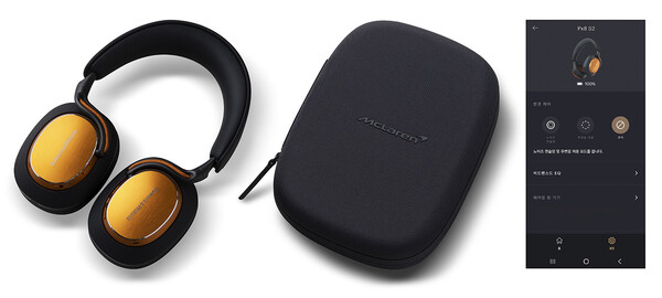 Px8 S2 맥라렌 에디션은 두 브랜드가 이어 온 10년 파트너십을 기념하는 제품이라고 하는데, 우선 광고 모델이 데이비드 베컴이 아니라 랜도 노리스와 오스카 피아스트리가 담당하고 있어 색다르다. 그리고 컬러가 확 바뀌었다. 파파야 오렌지라는 색상인데, 현재 맥라렌 F1 팀 컬러이자 차량 색상이며 맥라렌의 창립자인 브루스 맥라렌의 상징 색과 동일한 색상이기도 하다. 그래서 점잖게 느껴지는 Px8 S2의 웜 스톤, 오닉스 블랙 두 가지 색상과 달리 보다 강렬하고 젊게 느껴진다. 눈에 확 띄는 컬러를 좋아하는 분들에게 제격이다. 그리고 헤드 밴드와 이어컵 안쪽, 휴대용 케이스에 맥라렌의 로고와 맥라렌 스피드마크가 새겨져 있다. 또한 B&W 전용 앱인 Music | Bowers & Wilkins에서 볼 수 있는 제품 이미지가 Px8 S2가 아니라 Px8 S2 맥라렌 에디션이라는 것도 색다른 점이다.