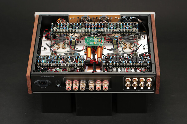 시청기 리자베타 XE는 그런 제작자가 선보이는 다소 독특한 3극 진공관 인티앰프 기종. 3극 진공관의 대표 제품인 300B를 장착했지만 또 하나 명 3극관인 2A3-40을 곁들여 사용할 수 있는 실리적 기종이다. 음색이 비슷하긴 하지만 서로 출력이 달라 동일한 회로상에서는 사용할 수가 없었는데, (아마 세계적으로도 이런 제품이 희귀한 것으로 알고 있지만) 동사는 그 기술적 난제를 극복, 편리하고 실용적이며 우아하기 짝이 없는 신기종을 선보이고 있는 것. 진공관 변경은 간단히 상부의 토글 스위치의 위치를 변경하고 관을 바꿔 끼기만 하면 된다. 한 제품에서 최고의 3극 명관 2개의 소리를 들을 수 있게 된 것. 물론 시청기만 이런 방식의 기종은 아니다. 300B와 2A3-40을 함께 구동할 수 있는 기종으로 동사의 파워 앰프 마그나노바, 새티늄 XE을 선보인 바 있고, 시청기 역시 전작 SE를 XE 버전으로 개량을 가한 제품이다.