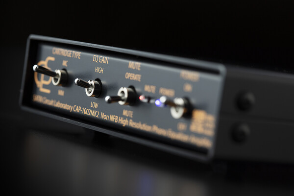CAP-1002 MK2는 표준 RIAA 커브에만 대응하는 대신 MC 카트리지 신호를 전류 신호로 받아 사트리 회로의 장점을 더욱 살렸다(MM 카트리지는 전압 입력). MK2가 되면서 최신 4세대 HBK 회로를 투입했고 S/N비를 최대 -155dB라는 경이적인 수준으로까지 끌어올렸다. 게인은 로우와 하이 중에서 고를 수 있다. 출력 버퍼 회로에는 앞의 두 앰프와 마찬가지로 HBFBC 회로가 투입됐다.