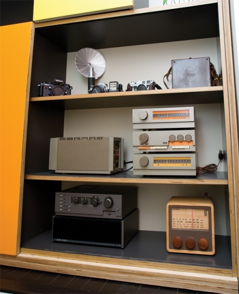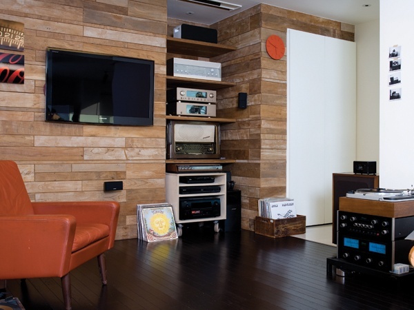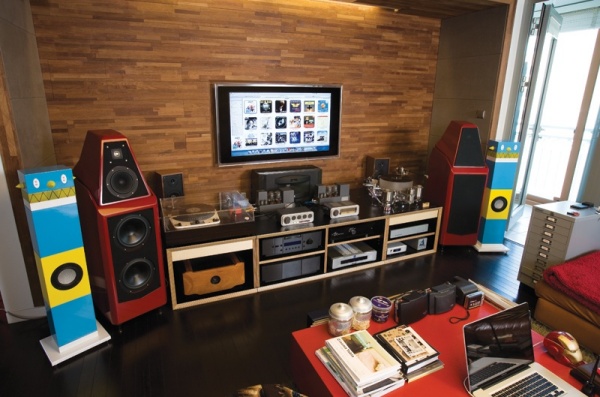 2층에는 다방 분위기가 나는 시스템이 구성되어 있다. 매킨토시 C40 프리앰프와 매킨토시 MC7300 파워 앰프, 그리고 JBL L-65 스피커의 시스템이다. 종로에서 DJ를 한 경험도 있다는 그는, 옛날에 듣던 느낌이 그리워 이렇게 그때 들었던 그 소리를 그대로 재현해 주는 추억 시스템을 구성했다고 한다. 처음 그의 집에 들어가 둘러보고 충격을 받았다. 인테리어 잡지에서 볼 법한 그런 공간이었기 때문이다. 실제로 그의 집은 인테리어 잡지에서 취재할 정도로 유명하다고 한다. 그리고 인테리어뿐만 아니라 전시된 미술품이나 사진, 수집해 놓은 피규어들도 눈을 뗄 수 없을 정도로 인상적이었다. 오디오 마니아 탐방이 아닌 인테리어 탐방이 될 것만 같은 기분이었다. 그러나 오디오 마니아라는 숙명에서 그는 벗어날 수 없었나 보다. 자세히 보고 들어보니 모든 것이 오디오를 위한 것처럼 느껴졌다. 멋진 디자인의 벽은 음향을 튜닝하는 공진재가 들어가 있고, 디자인만 추구한 것 같은 오디오 랙도 실은 음향적인 효과를 고려해 직접 디자인하고 주문 제작한 것이라고 한다.