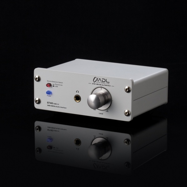 최근 USB D/A 컨버터의 열풍이 대단하다. 대부분의 제조사에서 하나둘씩 출시하고 있다. 이번에 소개할 GT40은 다양한 케이블과 단자 제조로 유명한 후루텍에서 ADL(Alpha Design Labs)이라는 서브 브랜드를 통해 출시했다. ADL은 하이 레벨의 컴퓨터 기반으로 음악을 재생하기 위한 제품들을 출시하고 있는데, 휴대용 헤드폰 앰프 겸 USB DAC로 ADL 크루즈, ADL 스트라이드가 있고, 그리고 USB 케이블과 HDMI 케이블, 아이팟 등을 연결할 수 있는 다양한 케이블 등이 있다. 이번에 소개할 제품은 USB D/A•A/D 컨버터인데, 보통의 D/A 컨버터와는 다른 특징을 가지고 있다. 특이하게도 포노 앰프(MM, MC)가 내장되어 있다. 그래서 턴테이블에서 재생되는 음악을 컴퓨터에 바로 녹음할 수 있다. 기기 후면에 위치한 스위치로 MM, MC, 라인 입력을 선택할 수 있어 녹음할 소스에 따라 선택하면 된다.