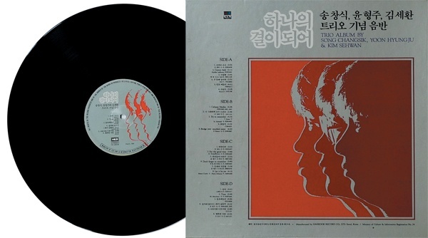 두 번째 음반 역시송창식, 윤형주, 김세환 트리오 음반으로'하나의 결이 되어'라는 앨범이다. 이 음반은 1984년 한국음반 제작으로, 일본 'Nichion' 스튜디오에서 녹음되었는데, 녹음 엔지니어는 'Yasushi Yanagihara'이다. 음반 제작은 국내 한국음반에서 맡았으며, 국내의 유명 마니아가 고음질 녹음을 추구하며 싱어들을 일본으로 데리고 가서 녹음한 것이 특징이다. 2장의 LP와 해설서가 들어 있으며 하드커버 앨범이다. 번안곡과 가요, 동화, 클래식 곡들을 골고루 분포시켜 트리오 기량을 마음껏 발휘하도록 기획되었다. 역시 보컬 밸런스가 뛰어나고, 각 싱어들의 음색과 디테일을 고음질로 살려낸 것이 매력 있다. 압권은 슈베르트의 송어를 기타 반주로 노래한 것인데, 그들의 뛰어난 보컬 솜씨를 유감없이 발휘하고 있다. 아마 1984년도 제작 음반으로는 최고의 음질을 보유한 가요 디스크가 아닐까 생각한다. 수록된 곡이 모두 주옥같고 통기타 음색을 최대한 살려 놓은 명반이다. 역시 고가 음반이 아니어서 구하는데 그리 어렵지 않지만 트윈 폴리오 음반보다는 귀하다.
