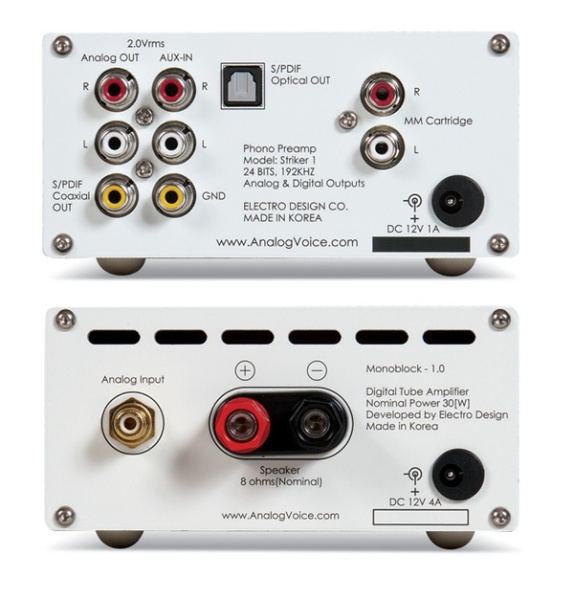 진공관 오디오를 능가하는 디지털 튜브 오디오 기술이라는 것을 적용한 모노블록 파워 앰프는 최고의 음색을 제공하며, 진공관 앰프의 숨겨진 특성을 해석하고 다시 클래스D 앰프에 적용한 것으로 소개되어 있는데, 빈티지 스피커들과 좋은 궁합을 이룬다고 한다. 입력은 아날로그 RCA 단자이며, 출력은 30W(8Ω). 여느 3극관 진공관 앰프의 파워를 능가한다.이 제품을 노트북에 연결해 소리를 울려 보았는데, 상당히 놀라웠다. 이 작은 제품들, 별로 특성이 없어 보일 것 같은 스피커에서 흘러나오는 소리가 매우 특이했기 때문이다. 통상 이런 기기 매칭으로 스피커를 울리면 사운드를 조여서 매우 청아한 쪽으로 튜닝을 하기 때문에 해상도가 좋은가 싶으면 현이나 성악에서 빈약해지거나, 아니면 두툼한 쪽이 되면 대합주곡에서 엉망이 되어 버리고, 피아노나 현 독주가 좀 괜찮다 싶으면 성악 역시 식은 감자처럼 되어 버리기 때문이다.이 제품은 그것을 절묘하게 컨트롤하는데 성공했다는 느낌이 든다. 300B처럼 중역이 두께가 있으면서도 깨끗하고 정확하기 때문이다. 피아노에서 번짐이 전혀 없고, 저역 울림과 고역까지 잔향이 너무도 세밀하고 단정하게 울려 나간다. 성악은 매끄럽고 달콤하다. 보통의 실력기가 아니다. 처음에는 스피커까지 제공된 풀 시스템이라 보급용 저가품으로 잘못 인식을 하기 쉽지만, 들을수록 이 제품은 신비하다.공학적으로 완벽한 최고급 측정기로 만드는 현대 반도체 앰프는 진공관 앰프보다 못한 소리가 난다. 그래서 오디오 기기는 전자 공학이 아닌 음향인지학을 기본으로 설계되어야 한다는 이 원칙에 철저히 근간을 둔 것이 바로 '신공지능' 기술이라는 것이며, 그러한 연구 끝에 만들어진 것이 본 제품이라는 자신감 넘치는 소개가 결코 과장이 아닌 것 같다. '사람은 연속적인 소리를 듣지만, 소리를 접하는 짧은 첫 순간에 소리 특성의 대부분을 파악하게 된다. 이것이 어택 타임(Attack Time)이라고 하는데, 이 시간 동안 소리가 조금 불확실하게 재생되면 우리는 음의 방향 감각을 잃고 만다. 그런데 실제로 모든 스피커에서는 어택 타임 동안 음의 전달이 어느 정도 지연되고 자연 음은 무너진다. 그 이유는 우퍼에 있으며 원인은 우퍼에 삽입되어 있는 큰 인덕터 때문이다. 여기서 소리의 응답이 느려지고 만다. 아날로그 보이스 기술은 바로 이 문제를 해결했다. 수십 년간 축적된 노하우에 의해 이뤄진 스피커와 앰프의 환상적인 조화를 통해 정확한 어택 타임에서의 응답을 이끌어낸 결과 빈티지와 같은 시원한 소리, 깨끗한 소리, 아름다운 목소리, 힘 있는 저역, 장엄하고 경쾌한 소리…'이런 제작사의 안내문이 결코 상술로 만들어진 것만이 아니라는 것은 들을수록 특이한 매력이 이 시스템에서 우러나오기 때문인데, 참 좋은 시절이 되었다. 몇 사람의 각고의 노력으로 이제 국내에서도 결코 비싸지 않은 가격으로 이런 소리를 듣게 되었다. 이제 조금만 열린 가슴이 된다면 이런 제품이 기꺼이 시장을 지배하리라 생각하며, 개발자의 노고에 갈채를 보낸다. 우리 오디오 시장에 다시 훈풍이 돌아온다면 바로 이런 제품들의 기여 때문일 것이며, 분명히 그런 날이 오리라 믿어 마지않는다.