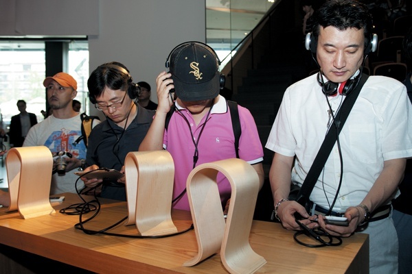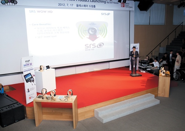 일단 들어보면 이 강력한 마법에 중독될 수밖에 없다. 한때 MP3 플레이어가 시장에서 강력한 힘을 발휘했을 때도, 이 음장 기능에 따라서 그 인기가 달라졌을 정도. 이제는 다양한 디지털 분야에 이 음장 기능들이 필수적으로 포함되어 있다. 이 음장들을 인지 못했더라도, 이미 자신들은 이 기능들을 접하고 있을 것이다. TV, 핸드폰, 데스크톱, 노트북 등 여러 제품들에 이미 이러한 기술들이 라이선스 형식으로 포함되어 있기 때문이다. 이제는 어쩌면 기본기에 대한 전쟁이다. 얼마나 많은 이들에게 주목받을 수 있는 기술력을 보유하고 있는가의 싸움이다. SRS는 여기에 대해 또 하나의 새로운 솔루션을 제시했다. 모바일에 어댑터를 부착하여, 음장 기능을 추가한다는 발상이다. 사실 모바일 환경에서 소프트웨어적인 방법으로 음장 기능을 추가한다는 것은 분명 한계가 있다. 필연적으로 음향 밸런스가 깨질 수밖에 없기 때문이다. 이런 식으로 부스트 업된 음들은 거칠고, 메마른 사운드를 던져줄 뿐이다. 특히 지나치게 처리된 음향들은 깨진 사운드를 들려주는데, 소음 공해가 따로 없다. 그렇기 때문에 SRS에서는 아예 어댑터를 추가했다. 하드웨어적 접근. 신선한 발상 아닌가. 효과는 그야말로 대단하다. 2채널 사운드가 입체적인 음향으로 풍성해진다. 밸런스를 유지한 채로 이렇게까지 사운드 변화를 이끌어낼 수 있는가 할 정도로 대단한 변화이다. 물론 집중해서 들어서 구분하는 수준이 아니다. 첫 음을 듣는 순간, 대번에 깨달을 수밖에 없다. 확연한 차이이기 때문이다. 이 놀라움을 전하기 위해, SRS에서는 신제품 발표회를 열었다. 지난 7월 17일, KT 올레스퀘어에서 SRS iWOW 3D가 그 모습을 드러낸 것.