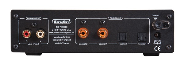현재 USB를 이용한 PC 파이는 한국, 대만, 일본 등 주로 아시아권에서 많이 애용하는 방식인데, 미국이나 유럽에서는 주로 아이팟을 직접 꽂아 음악을 감상하는 방식이 주를 이룬다. 이것은 USB 케이블의 판매량을 알아보면 금방 알 수 있는 사실이다. 그러니까 지금 현재 PC 파이를 하고 있는 한국인들은 세계에서 가장 선진적인 PC 파이를 하고 있는지도 모른다. 이에 걸맞게 고성능 DAC의 수요가 급증하고 있는 것을 보면 알 수 있다. 베레스포드 역시 그런 추세에 발맞추고 있는 영국의 오디오 업체이다. 몇 년 전 동사의 TC-7520 DAC가 수입되어 호평을 받은 적이 있다. TC-7520은 책상 위에 놓고 PC 파이를 하기 좋은 아담한 사이즈였는데, 소리는 맑은 편이었다고 기억한다. 오디오 시스템에서 오디오 기기는 자신의 존재를 덜 드러낼수록 음악이 더 잘 표현되는데, 그런 면에서 50만원도 안 되는 저렴한 가격의 TC-7520은 입문기로 괜찮았던 것이다.이번에 시청한 부시마스터 TC-7530DC는 TC-7520의 후속작으로 2012년도 제품이다. 이 제품은 앞선 제품에 비해 전원부 노이즈를 개선하고, 고역과 저역 특성을 향상시켰다고 한다. 즉, 거칠고 선명하지 못한 고역, 가늘고 빈약한 저음 등을 개선했다는 것이다.전작인 TC-7520에 USB 입력이 있었던 것에 비해, 이 제품에는 USB 입력이 없는데, CD 플레이어나 DVD 플레이어를 연결해서 감상하는 쪽에 치중한 것으로 보인다. 24비트/192kHz에 대응하는 칩을 사용했고, 낮은 지터를 통해서 저 노이즈를 실현했다고 한다. 특히 고정밀 크리스털 컨트롤 리시버 칩을 사용해 비슷한 가격대의 경쟁 DAC와 비교했을 때 낮은 지터를 자랑한다. 그리고 심플한 필터 회로 구성을 통해 신호 처리 과정에서 노이즈를 감소시켜 더 깨끗하고 섬세한 소리를 구현하고자 했다. 요즘 늘어 가고 있는 헤드 파이에 적극 대응해 다양한 종류의 하이엔드급 헤드폰을 충분히 소화할 수 있는 고성능의 AB클래스 헤드폰 회로가 탑재되어 있다. 전면 LED는 음악 재생 시 꺼지도록 프로그래밍 되어 있고, 입력이나 기기 변경 시에만 켜진다. 입력으로 2개의 옵티컬, 2개의 코액셜 단자가 있다. 출력으로 1조의 RCA 단자가 있다. 전원으로 12V 어댑터를 사용한다.