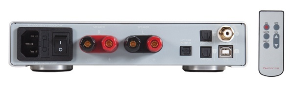 전체적인 디자인과 조작성 등은 마치 아이콘 제품이 확장된 스타일로 볼 수도 있다. 내부 회로가 풀 디지털을 추구하고 있기에 아날로그 입력이 필요 없으며, 이로 인해 별도의 A/D(Analog to Digital) 칩과 D/A(Digital to Analog) 칩도 사용되지 않았다. USB 입력부에는 자사의 Nf USB96s USB 리시버 칩을 사용하여 96kHz 샘플레이트까지 대응되며, 디지털 실렉터용 리시버 칩은 아사히 카세이의 AK4113을 사용, 24비트/192kHz 데이터를 손실 없이 처리할 수 있다. 사운드의 핵심인 최종 출력 IC는 독일 인피니언사(구 지멘스) SAB2403EN1 출력 IC를 채널당 1개씩 총 2개를 사용하고 있다. SAB2403 출력단의 경우는 PWM 방식으로 신호를 받아 처리하는 클래스D 출력단으로, 로우 패스 필터를 거쳐 최종 스피커 출력으로 연결되는데, PCM 오디오 데이터를 가장 손실 없이 효과적으로 처리하도록 디지털 신호 체계를 구성하고 있다. 출력은 4Ω기준 채널당 75W 출력, 8Ω기준 채널당 50W의 출력으로 높지 않기 때문에 스피커 매칭 시 이를 염두에 둔 선택은 필요하다. 제품 사이즈와 가격대를 고려한다면 만족스러운 부분. 전원부 역시 PWM 방식의 SMPS를 사용하고 있으며, 주요 콘덴서 부품들은 모두 누포스 자사 부품을 채용했다. 액세서리로 소형 리모컨을 별도로 제공하여 실렉터와 볼륨, 파워 등 모든 조정이 가능하여 편리성도 강조하고 있다. 그리고 타사 제품들과 달리 MAC iOS 사용 시 별도의 드라이버 설치 없이 바로 사용이 가능하여 편리한데, 이는 이미 아이콘 시리즈에서 MAC용 제품 인터페이스에 대한 충분한 고찰이 있었기에 DDA-100에서도 효과적으로 적용하고 있는 듯하다. 전체적인 사운드 성향은 저가의 디지털 앰프들과 달리 튜닝이 잘 되어 있어 맑고 선명한 고역을 통해 음의 초점이 정확하다. 대역 밸런스도 뛰어나 디지털 음원 재생에 탁월한 성능을 발휘한다. 대편성 등에서는 출력과 저역 구동의 아쉬움은 있지만, 실제 사용자 환경을 고려해 본다면 기대 이상의 성능이다. PC 파이 사용자들이 작은 공간에서 88dB 이상의 북셀프형 스피커와 매칭한다면 최적의 솔루션이 될 것이다. 한마디로 DDA-100 앰프는 진정한 가격 대비 성능의 제품이 어떤 것인지를 명확히 보여주고 있는 새로운 개념의 디지털 인티앰프이다. _글 장현태