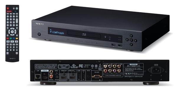 Oppo BDP-103의 특징 1 오포 BDP-93과 동일한 시러스 로직 CS4382A(8CH, 24비트/192kHz)와 동일한 DAC를 사용하지만 진화된 회로 디자인과 새로운 아날로그 필터 및 DAC 출력 부분의 개선으로 더 나은 음질을 들려준다. 2 듀얼 코어 CPU를 장착하여 더 빠르고 안정된 퍼포먼스. 3 미디어텍 사의 최신 디코더 칩 사용.4 1기가 바이트의 SLC 내부 메모리 사용. 5 홈 메뉴 및 사용자의 인터페이스를 새롭게 디자인. 6 HDMI-2번 출력을 통해 DSD 파일을 재생할 수 있고, PCM 및 일반 파일은 HDMI-1번 출력을 통해 재생 가능. 7 Cinavia가 적용.8 AC 소켓에 접지 개선.9 2K by 4K까지의 업스케일링 지원.10 2D 영상을 3D로 컨버전 가능(리모콘에서 간단하게 조작). 11 HDMI 스플리트 기능을 통해 더 다양하게 HDMI 출력 설정(HDMI-1 비디오·HDMI-2 오디오)12 전원을 켜지 않은 상태로 디스크를 꺼낼 수가 있다(리모트 Eject 버튼을 누르면 전원이 켜지며 트레이가 열린다). 13 퀵 버튼 모드 채용(리모컨의 옐로우 및 블루 버튼).