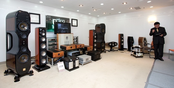 오디오갤러리 다양한 하이엔드 시스템들을 만끽할 수 있었던 곳. 시청실 역시 국내 최고 수준으로 꾸며놓아 그야말로 음악 들을 맛이 나는 공간이다. 오디오 리서치의 레퍼런스 5 SE, 레퍼런스 250, 레퍼런스 CD8로 구성되어, 소누스 파베르의 아마티 푸투라를 울리고 있었다. 또 다른 시연장에서는 골드문트의 메티스 풀 시스템이 등장했는데, 골드문트의 새로운 시도들이 엿보이는 그런 제품이다.