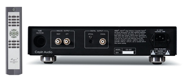 이에 매칭되는 동사의 CD 플레이어 CD-50T도 앞에서 말한 것처럼 아날로그 출력에서나 디지털 출력 모두에 진공관을 채용함으로 디지털 사운드의 문제점이라 지적되는 차가운 사운드를 아날로그적인 유연한 사운드로 변환시키기 위해 노력했다고 볼 수 있다. 그 외에도 HDCD에 대응하는 필터의 최신 기술을 접목하려 했으며, 24비트/96kHz로 업샘플링된 음향을 제공할 수 있는 소니의 KSS213Q 픽업 메커니즘과 버 브라운의 PCM1732 DAC가 채용되고 있다. 그리고 토로이달 트랜스를 사용하는 등 전원부를 충실하게 제작하고 있다. 뿐만 아니라 최적의 변환을 위해 각각의 채널에 버 브라운의 OPA 604 칩을 사용했다. 50T의 무게는 7.8kg으로 무거운 편은 아니지만 전면 패널은 12mm나 되는 알루미늄을 과감하게 채용하여 자체 발생하는 발열과 미세 진동에 근본적으로 대응하고 있다. 이 50T를 시청한 박성수 선생의 시청평에서 '중음역을 중심으로 하여 상하로 자연스럽게 펼쳐지는 확산감이 뛰어난 음향 조형은 이 플레이어에서 가장 눈여겨볼 만한 대목으로 출력단에 진공관을 채용한 결과로 보아야 할 것 같다'고 적고 있다.